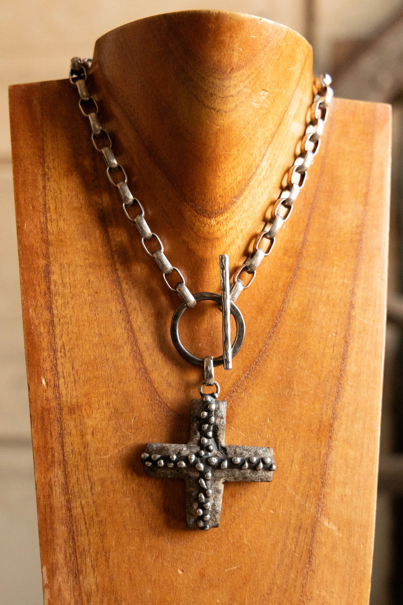 • V2 Designs Stone Cross Solder Stud Necklace